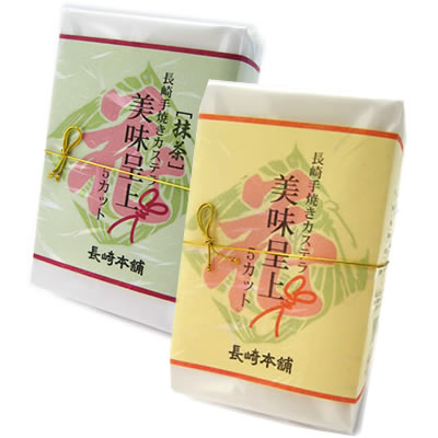 しっとりとした上品な抹茶の香り長崎本舗 カステラ美味呈上詰合せ(6個入)【長崎名物】価格: 3,990円レビュー評価: 0.0 レビュー数:0 創業以来かわらぬ美味しさを守り継いできた長崎本舗長崎カステラの真の味をここにお届けします。長崎のカステラは、他の場所のカステラとは一味ちがいます。長崎の風土と、カステラの相性がとてもいいのです。職人が、一つ一つ手づくりでお届けします。 この商品は直送となりますので、 長崎本舗 から直送便にてお届けします。美味呈上(4個入)・スライスカステラとの同梱はできません。4箱まで1個口でお届け可能です。産 地長崎県商品説明長崎本舗のカステラは熟練の職人が丁寧に焼き上げた逸品です。そこに敷いたザラメ糖は砂糖伝来の地長崎ならではのカステラの特徴です。「抹茶」はしっとりとした上品な抹茶の香りが広がります。レ |